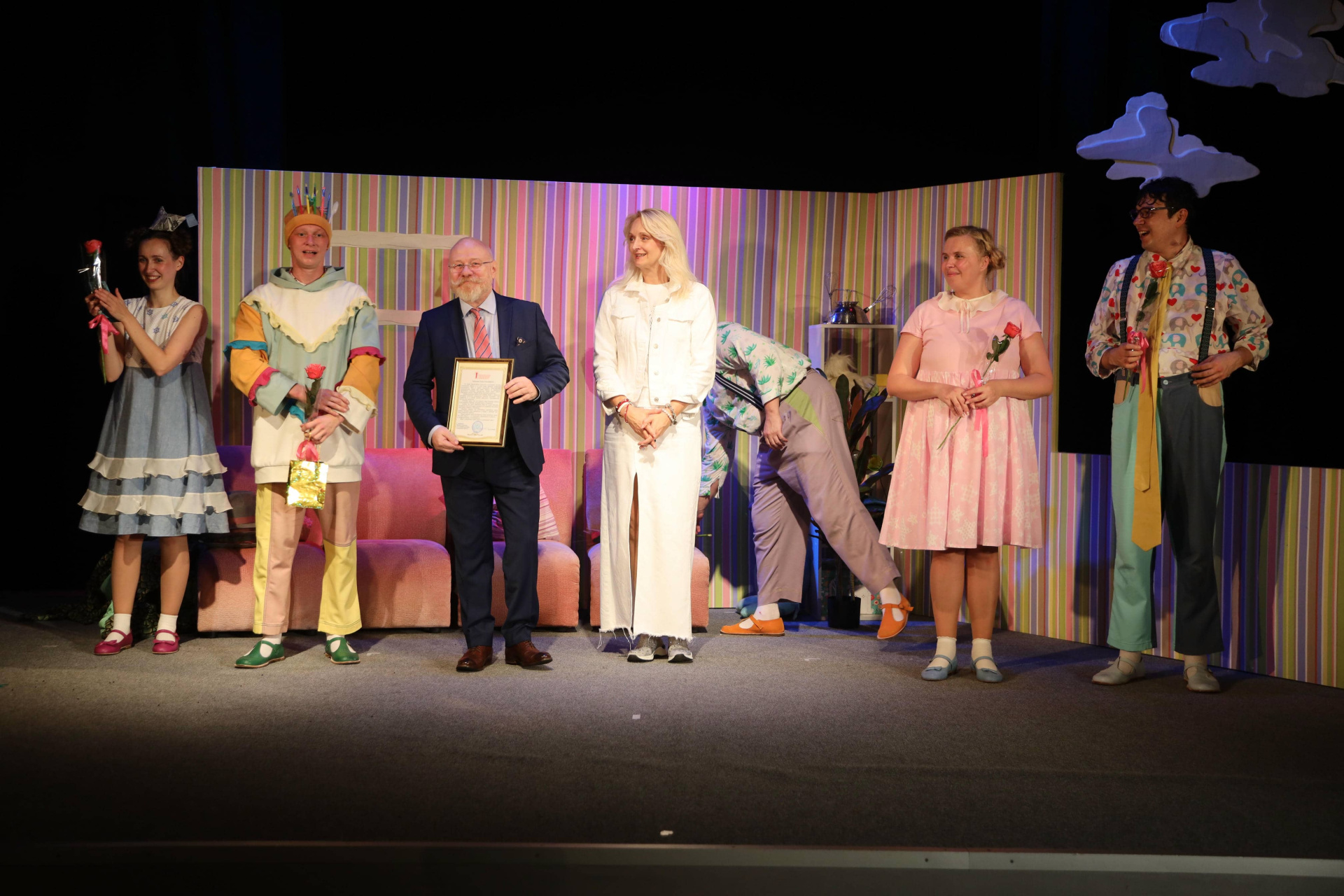 На закрытии "Больших гастролей" директор-художественный руководитель заслуженный артист РФ Эдуард Терехов и главный режиссер Ульяновского Театра юного зрителя NEБОЛЬШОЙ ТЕАТР Марина Корнева поблагодарили руководство Драматического театра «На левом берегу» за теплый прием и вручили директору Елене Гущиной «Благодарственное письмо» Министерства искусства и культурной политики Ульяновской области.