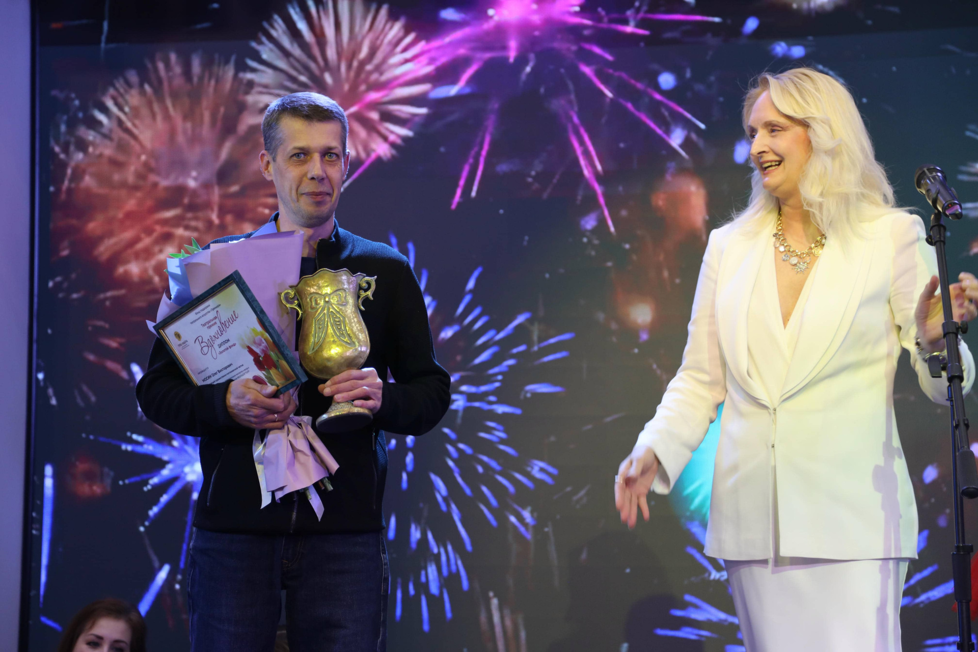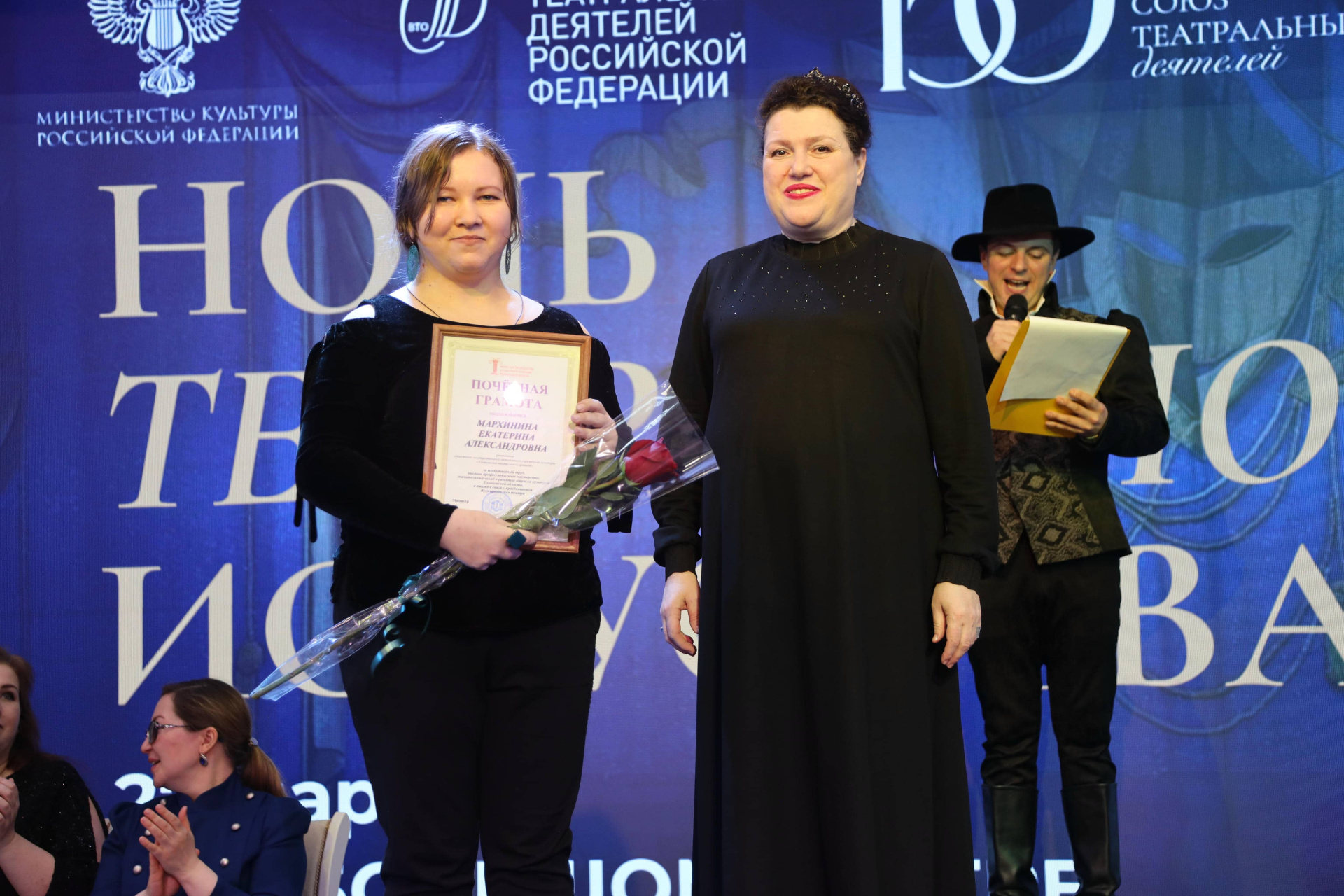 Илья Владимирович Ножечкин, председатель Ульяновской Городской Думы, вручил Почетную грамоту Городской Думы артистке Татьяне Александровне Зверевой и благодарственное письмо Администрации города Ульяновска специалисту по маркетингу Галине Евгеньевне Хватковой.